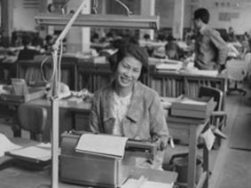 坂本トミ子さんは、大正15年(1926年)茨城県日立市に生まれ、若い頃には陸上競技の代表選手をつとめたほどの闊達な女性で、早くから運転免許も取得‥‥‥英会話も堪能で、GHQで通訳・タイピストとして活躍する職業婦人でした。